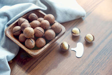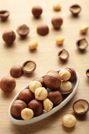 Organic Macadamia nut on wooden table