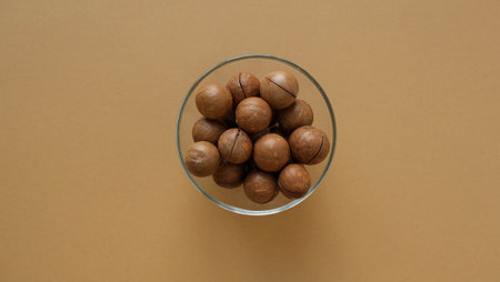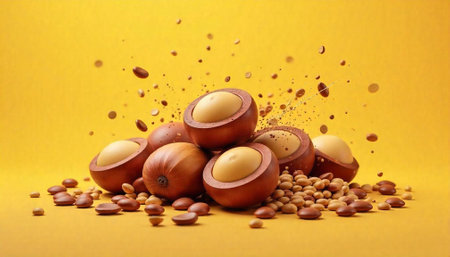 Elegant display of macadamia nuts against a vibrant background