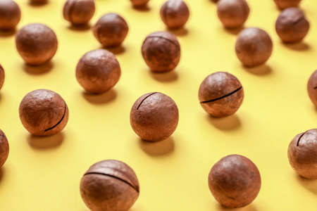 delicious and high-calorie macadamia nut on a yellow background.