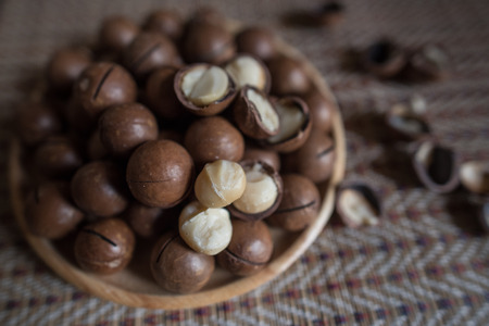 Organic Macadamia nut on wooden
