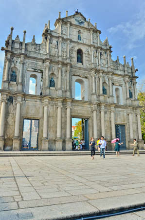 MACAU-MAY 9 : Tourists visit the Historic Centre of ruined church of St Paul on May 9, 2013 in Macau, China. The ruined church of St Paul was inscribed on the UNESCO World Heritage List in 2005.