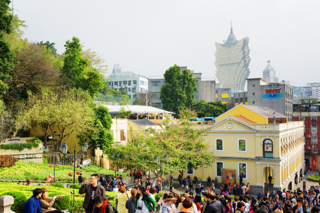 MACAU - JANUARY 30, 2015: View on the historic centre of Macau. Macau is a popular tourist attraction of Asia.