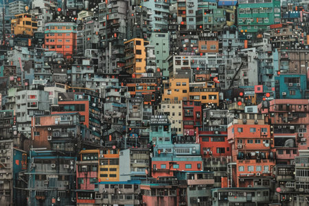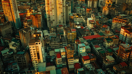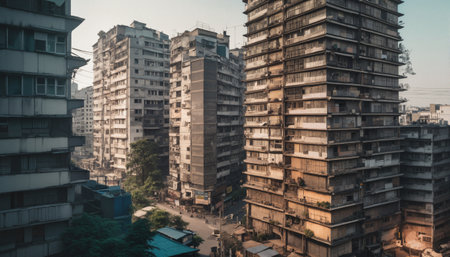 Densely populated urban area, where buildings resemble a jungle of concrete and steel.