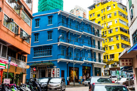 Blue house building in Wan Chai, Hong Kong. Hong Kong house of storie