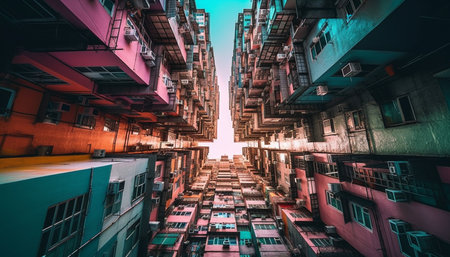 Daytime cityscape of Kowloon district, urban skyline. Modern city view. Created with generative AI tools