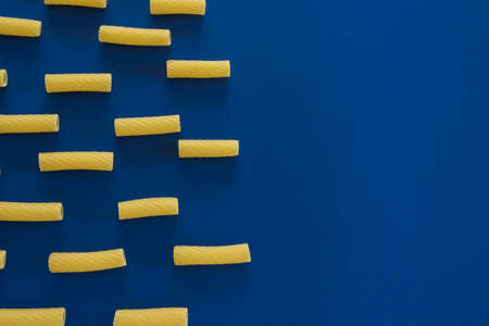 Abstract food background, Italian pasta products on blue background