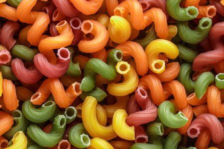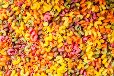 colorful raw spiral pipe pasta background, close up