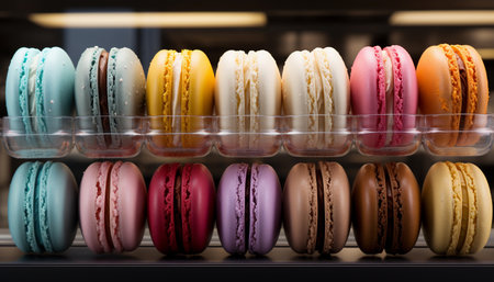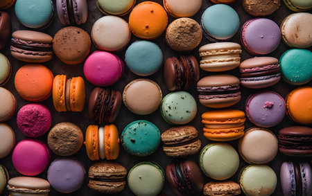 Generative AI, Assortment of macaroons, different French sweet cookies