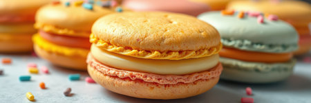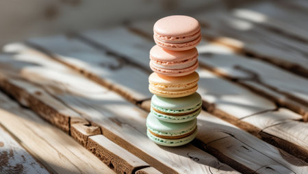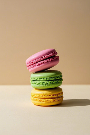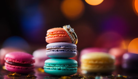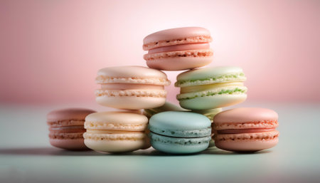 Indulgent macaroon stack, baked with almond and cream, for celebration generated by artificial intelligence