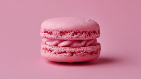Macaron. Photo in minimal style. French almond cookie on pastel pink background