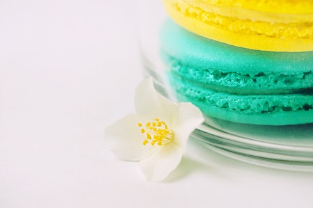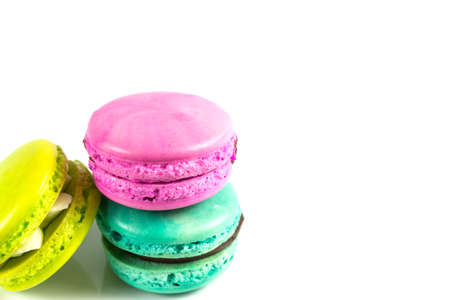 Cake macaron or macaroon on white background, sweet and colorful dessert