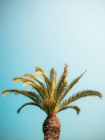 beautiful california palm tree standing by itself at the beach during summer