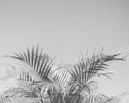 Summer holiday and tropical nature concept. Palm tree in summertime as vintage black and white, monochrome background