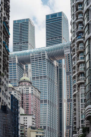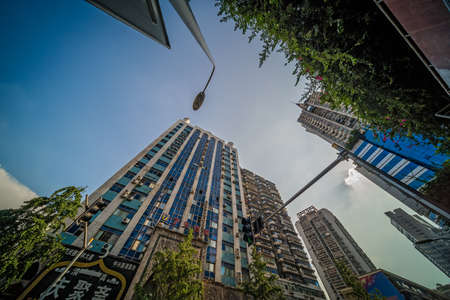 Chongqing, China - August 2019 : View of the tall highrise residential building in the Jiefangbei district in the downtown of Chongqing city