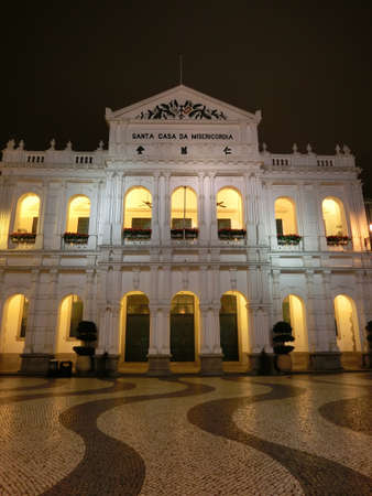 Macau, MAR 15, 2012 - Night view of the Holy House of Mercy and Senado Square of Macau