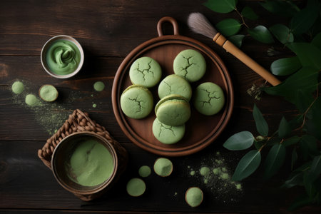Tasty matcha cookies top view. Sweet food. Generate Ai