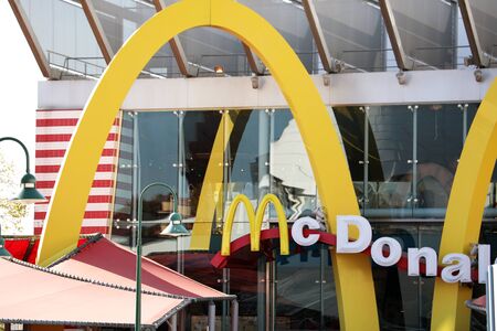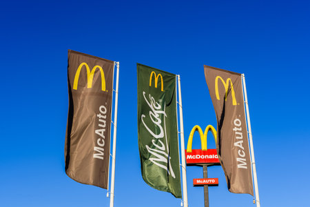 BADEN-BADEN, GERMANY - MAY 5, 2016: McDonald's restauraunt sign. The McDonald's Corporation is the world's largest chain of hamburger fast food restaurants.