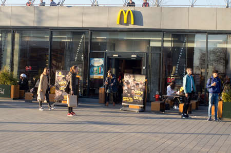 Arnhem, Netherlands - February 26, 2019: people at the new McDonalds near central staton Arnhem