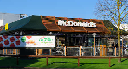 Reading, United Kingdom - February 06 2020: The frontage of McDonalds Drive thruand restaurant on Pincents Lane