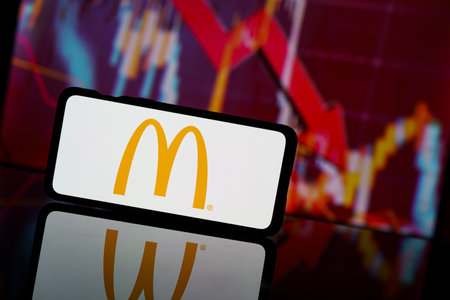 McDonalds company shares go down at stock market. McDonalds company financial crisis and failure. Economy collapse