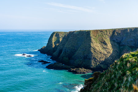 Scottish seashore with cliffs. St Abbs Head National Nature Reserve on the Berwickshire coastline, Scotland, UK