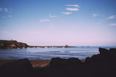 View from the beach at Bude in Cornwall Vintage Retro Filter.