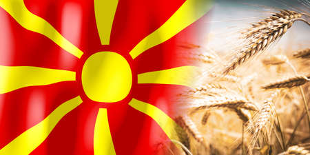 Macedonia - flag and ripe rye field - crops, cereal, harvest concept