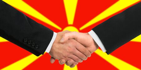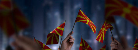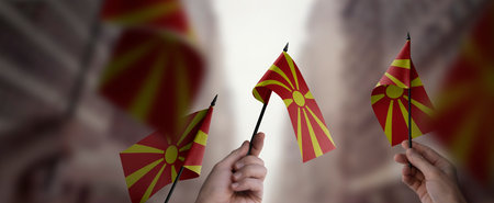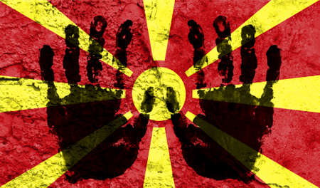 Handprints on the background of the flag of Macedonia. Freedom of choice, corruption, and detention concept