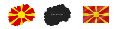 Macedonia. Map with masked flag. Detailed silhouette. Waving flag. Vector illustration isolated on white.