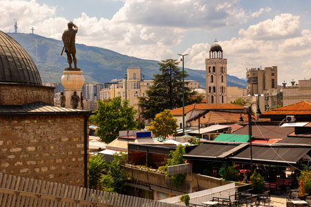 Old Bazaar district in Skopje, North Macedonia, with bell tower