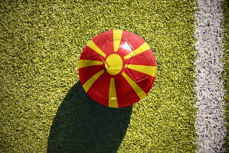 October 6, 2021, Skopje, Macedonia. FIFA World Cup against the background of the flag of Macedonia.