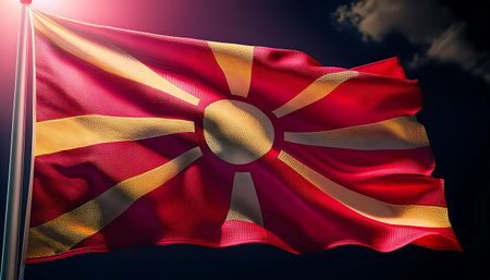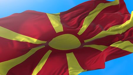 Macedonia National Flag Waving on Blue Sky Background 3D Render