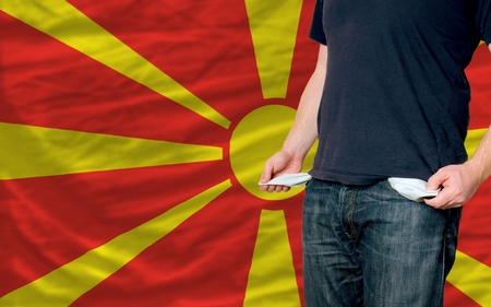 Barcode ID number on wrist of a human and national flag on background - Macedonia