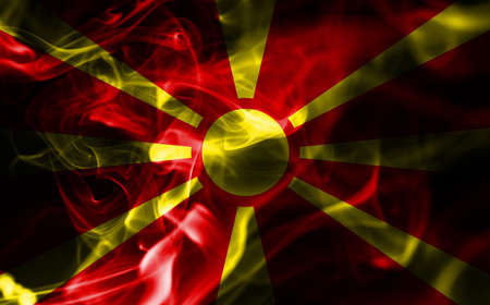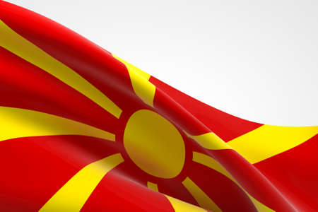 Macedonia flag waving in wind Realistic Macedonian background. Macedonia background