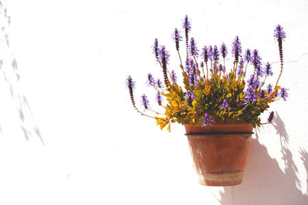 Spanish wall with beautiful plants. Andalucia, white wall