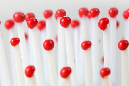 Lots of matches on a blue background. The concept of chaos and order. Selective focus