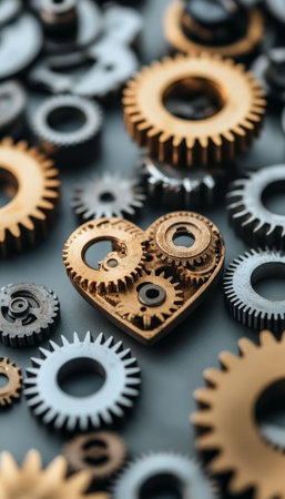 Heart of Innovation Gears Forming Love as a Symbol of Progress and Technological Interconnectivity