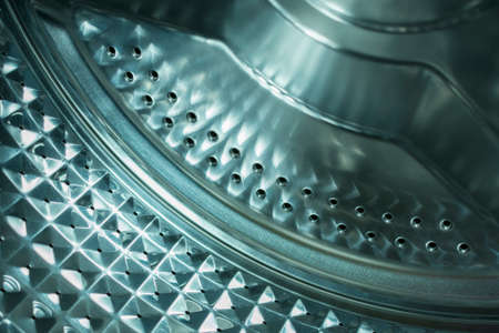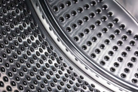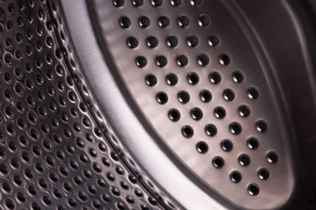 Steel shiny with holes the surface of the washing machine drum inside