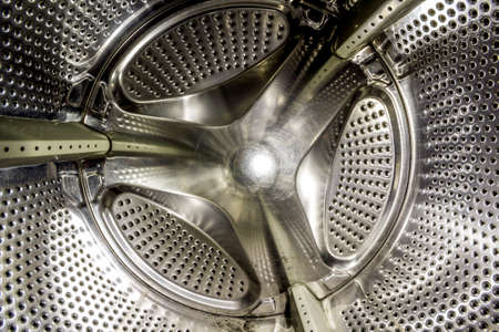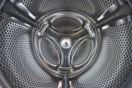 Steel drum of a washing machine from the inside close-up.