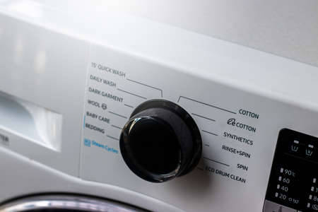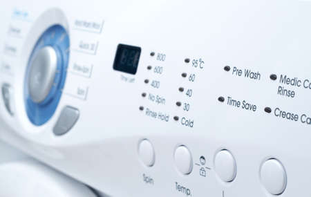 Closeup of a control panel of white washing machine