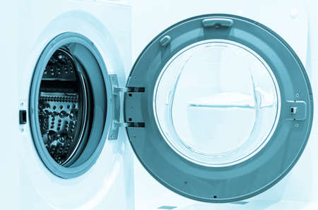Open the front door of the washing machine drum. Housework and laundry. Household electrical appliances.