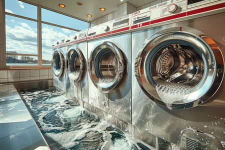 Overflowing Washing Machines in a Laundromat