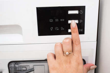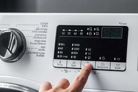 Close up of man's hand adjusting washing machine
