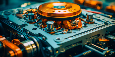 close-up of projector gears and mechanisms, created with generative ai