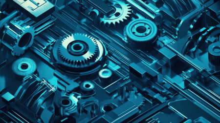 Explore a captivating 3D isometric view of a mechanical engineering setup featuring intricate gears and systems, perfect for innovation and design concepts.