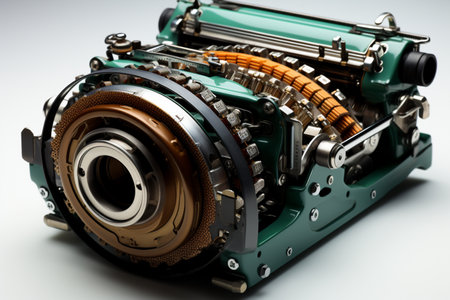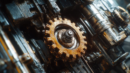Intricate beauty of mechanical textures. The image highlights the precise details, metallic surfaces, and industrial elements, creating a visually stunning composition. Generative AI