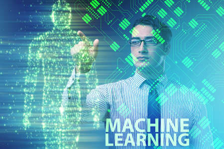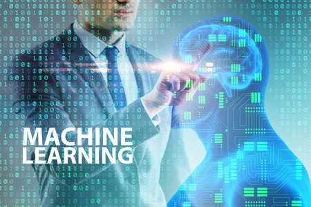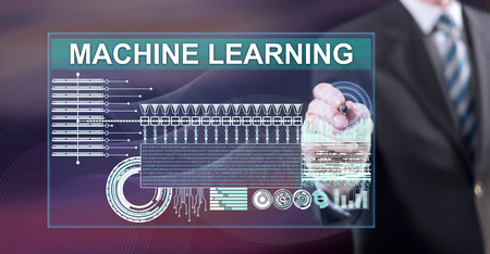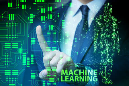 Business, Technology, Internet and network concept. Young businessman working on a virtual screen of the future and sees the inscription: Machine learning