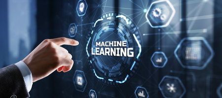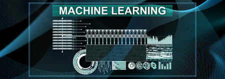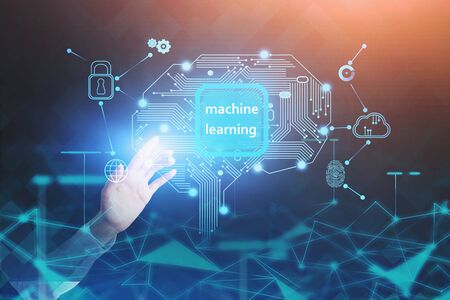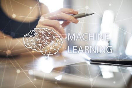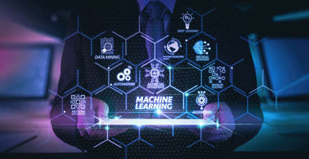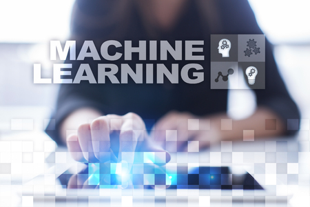 Machine Learning. Text and icons on virtual screen. Business, internet and technology concept.