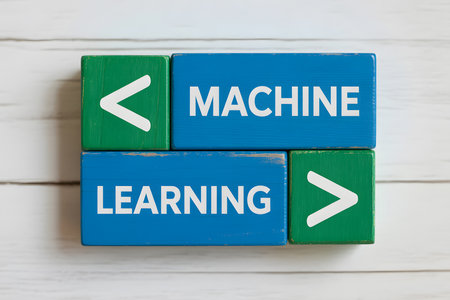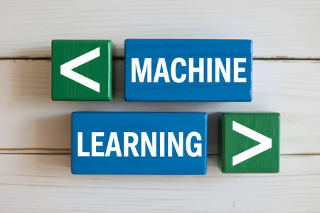 Machine Learning Visual Concept on Wooden Blocks for Business or Media. Minimalist Wooden Blocks Composition.