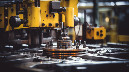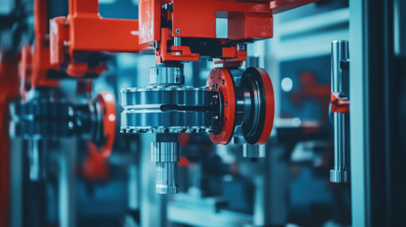 Discover the intricate details of industrial machinery with this close-up image, highlighting mechanical components in an energy-rich manufacturing setting.